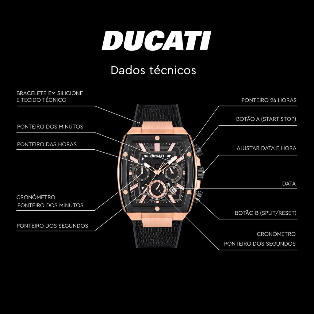 Relógio Ducati DT005 Crono rg m/preto b/tecido preto