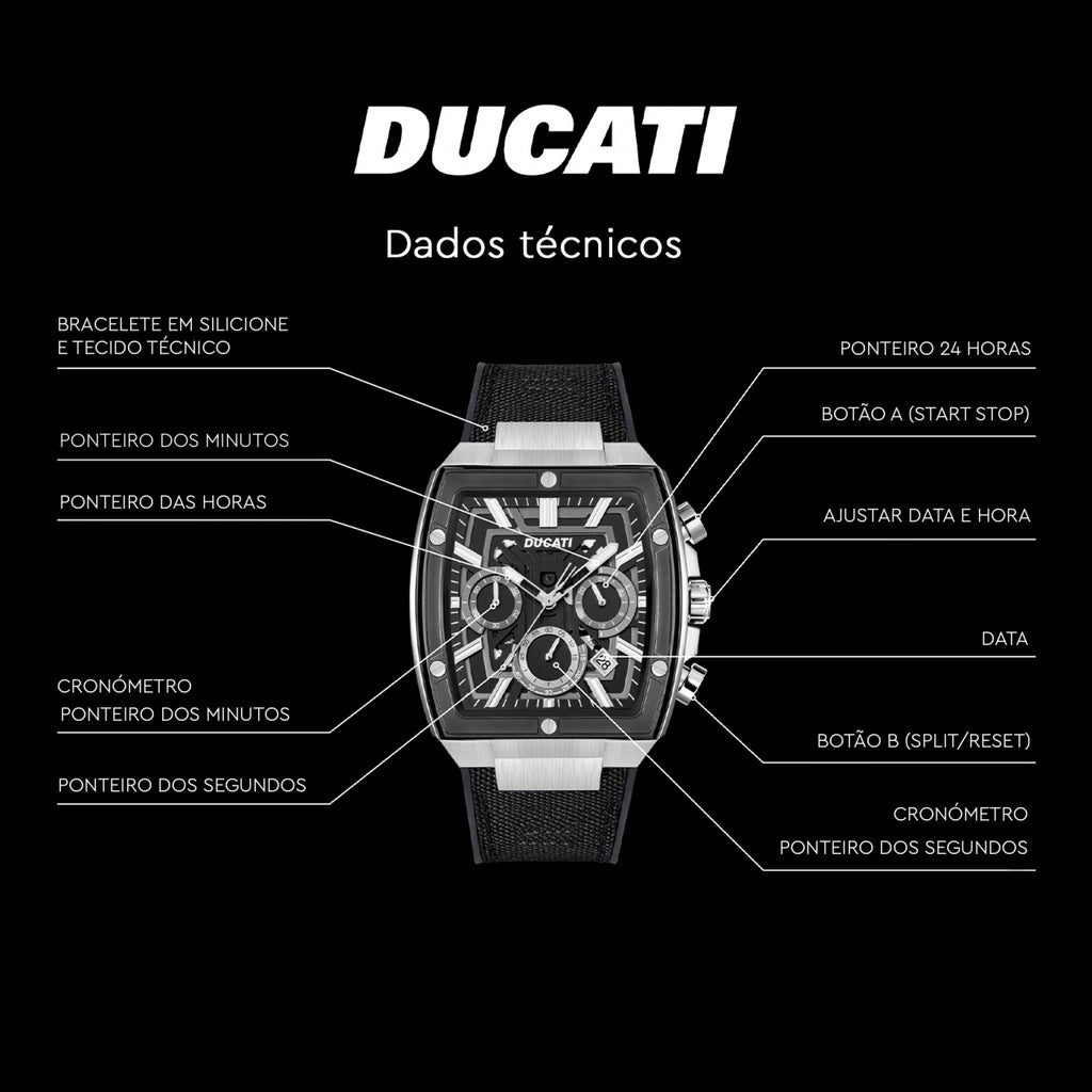 Relógio Ducati DT005 Crono ss m/preto b/tecido preto